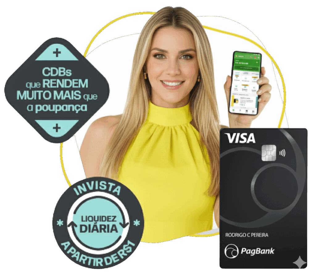 * Taxa para parcelamento em 12x é de 1,41% por parcela, e em 18x é de 1,31% com Cartão de Crédito Visa PagBank. Para os demais cartões, acima de 12x, sujeito à aprovação do emissor.