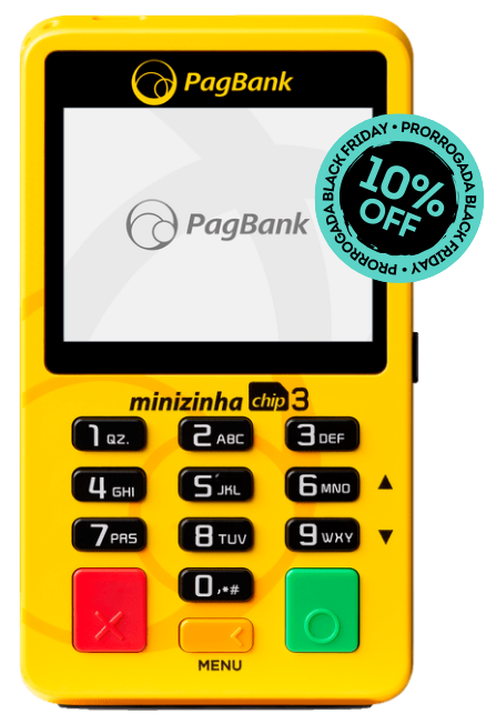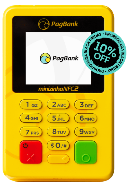 Com a PagBank você paga um ÚNICO valor de adesão a máquina e com isso tem ela com GARANTIA de 05 anos, sem cobranças de aluguéis